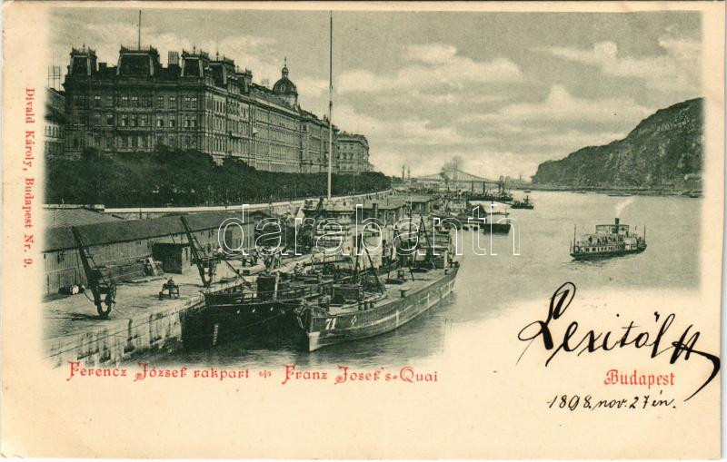1898 (Vorläufer) Budapest V. Ferenc József (Belgrád) rakpart, uszályok... https://www.darabanth.com/hu/442-Gyorsarveres/442.0/Kepeslapok/Magyarorszag~2000005/1898-Vorlaufer-Budapest-V-Ferenc-Jozsef-Belgrad-rakpart-uszalyok-ingahajo-Divald-Karol~II2906460