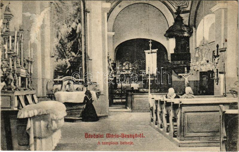 Leírás: 1909 Máriabesnyő (Gödöllő), Kegytemplom, belső (ragasztónyom / glue marks)