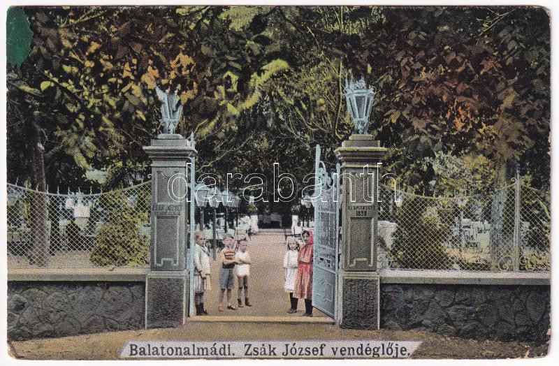 1915 Balatonalmádi, Zsák József vendéglője (Rb) https://www.darabanth.com/hu/442-Gyorsarveres/442.0/Kepeslapok/Magyarorszag~2000005/1915-Balatonalmadi-Zsak-Jozsef-vendegloje-Rb~II2910058