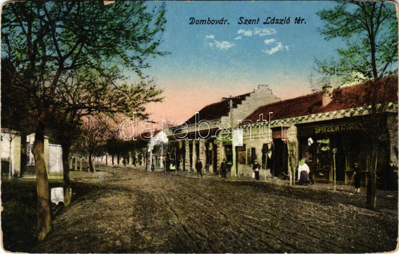 1915 Dombóvár, Szent László tér, Spitzer üzlete (kopott sarkak / worn ... https://www.darabanth.com/hu/442-Gyorsarveres/442.0/Kepeslapok/Magyarorszag~2000005/1915-Dombovar-Szent-Laszlo-ter-Spitzer-uzlete-kopott-sarkak-worn-corners~II2914545
