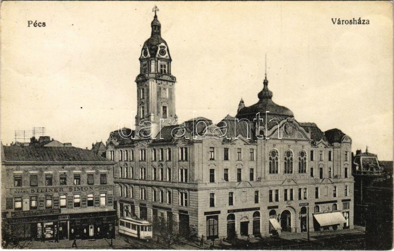 1915 Pécs, Városháza, villamos, Steiner Simon szabó üzlete, gyógyszert... https://www.darabanth.com/hu/442-Gyorsarveres/442.0/Kepeslapok/Magyarorszag~2000005/1915-Pecs-Varoshaza-villamos-Steiner-Simon-szabo-uzlete-gyogyszertar-EK~II2911527
