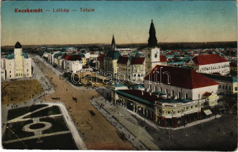 Leírás: 1919 Kecskemét, látkép, zsinagóga, üzletek, városháza. Fekete Soma kiadása (EB)
