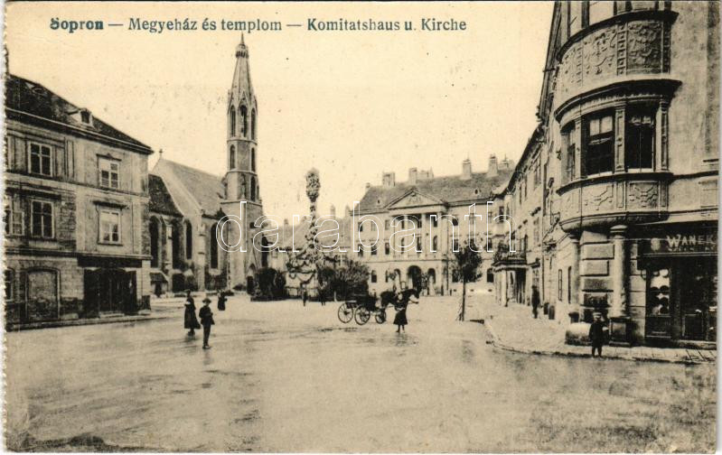 1921 Sopron, Megyeház és templom, Wanek üzlete (non PC) https://www.darabanth.com/hu/442-Gyorsarveres/442.0/Kepeslapok/Magyarorszag~2000005/1921-Sopron-Megyehaz-es-templom-Wanek-uzlete-non-PC~II2909450