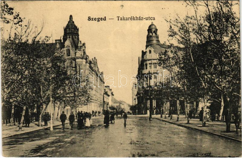 1921 Szeged, Takarékház utca. Grünwald Herman kiadása (EK) https://www.darabanth.com/hu/442-Gyorsarveres/442.0/Kepeslapok/Magyarorszag~2000005/1921-Szeged-Takarekhaz-utca-Grunwald-Herman-kiadasa-EK~II2909456