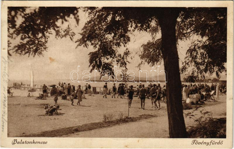 1929 Balatonkenese, Fövenyfürdő, strand (r) https://www.darabanth.com/hu/442-Gyorsarveres/442.0/Kepeslapok/Magyarorszag~2000005/1929-Balatonkenese-Fovenyfurdo-strand-r~II2906304