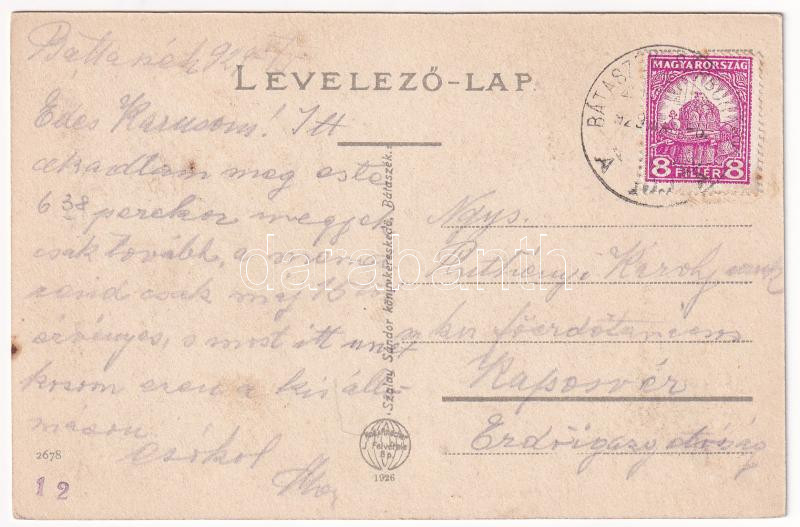 1929 Bátaszék, Községi elemi népiskola. Szalay Sándor kiadása https://www.darabanth.com/hu/442-Gyorsarveres/442.0/Kepeslapok/Magyarorszag~2000005/1929-Bataszek-Kozsegi-elemi-nepiskola-Szalay-Sandor-kiadasa~II2909984