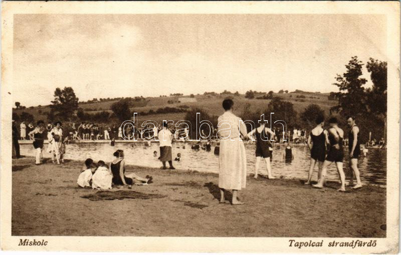Leírás: 1931 Miskolctapolca, Görömbölytapolca, Görömbölyi-Tapolca, Tapolca (Miskolc); Tapolcai strandfürdő, fürdőzők (EK)