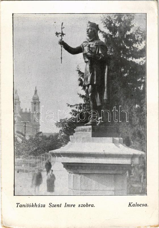 1939 Kalocsa, Tanítók háza és Szent Imre szobor (EK) https://www.darabanth.com/hu/442-Gyorsarveres/442.0/Kepeslapok/Magyarorszag~2000005/1939-Kalocsa-Tanitok-haza-es-Szent-Imre-szobor-EK~II2908780
