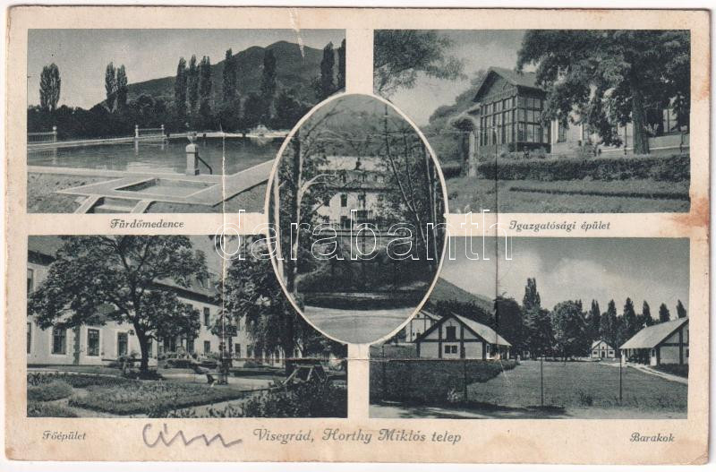1942 Visegrád, Horthy Miklós telep, Fürdőmedence, Igazgatósági épület,... https://www.darabanth.com/hu/442-Gyorsarveres/442.0/Kepeslapok/Magyarorszag~2000005/1942-Visegrad-Horthy-Miklos-telep-Furdomedence-Igazgatosagi-epulet-Foepulet-Barakkok~II2882727