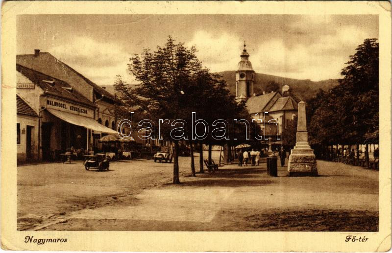 Leírás: 1948 Nagymaros, Fő tér, Waldvogel cukrászda, automobil (Rb)
