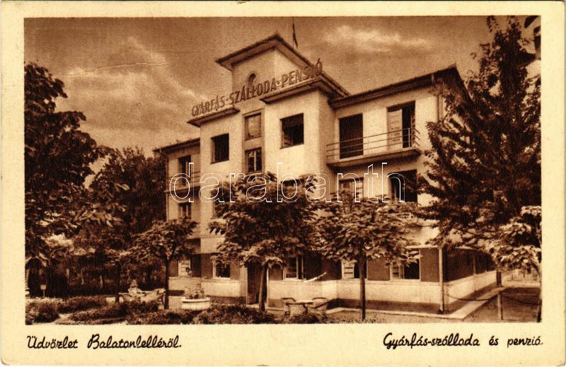 1950 Balatonlelle, Gyárfás szálloda és penzió (gyűrődés / crease) https://www.darabanth.com/hu/442-Gyorsarveres/442.0/Kepeslapok/Magyarorszag~2000005/1950-Balatonlelle-Gyarfas-szalloda-es-penzio-gyurodes-crease~II2907289