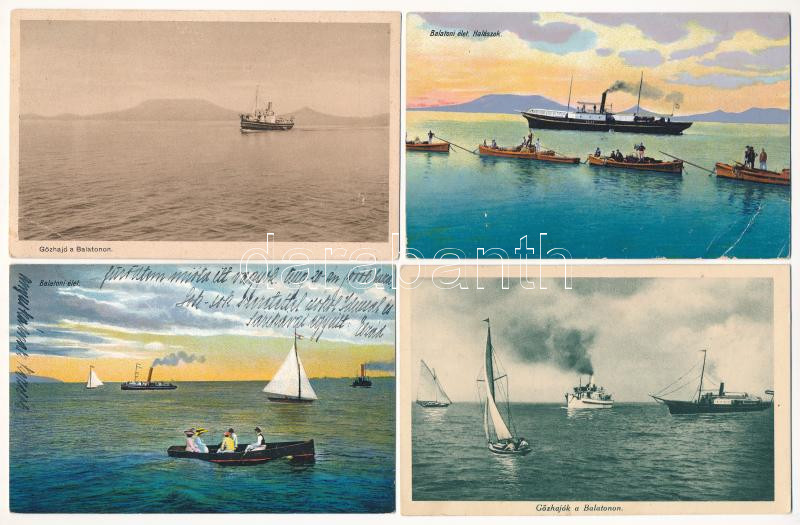 Leírás: Balaton - 4 db régi képeslap gőzhajókkal