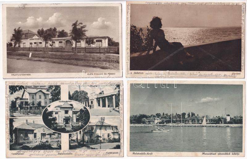 Leírás: Balaton - 4 db régi képeslap vegyes minőségben
