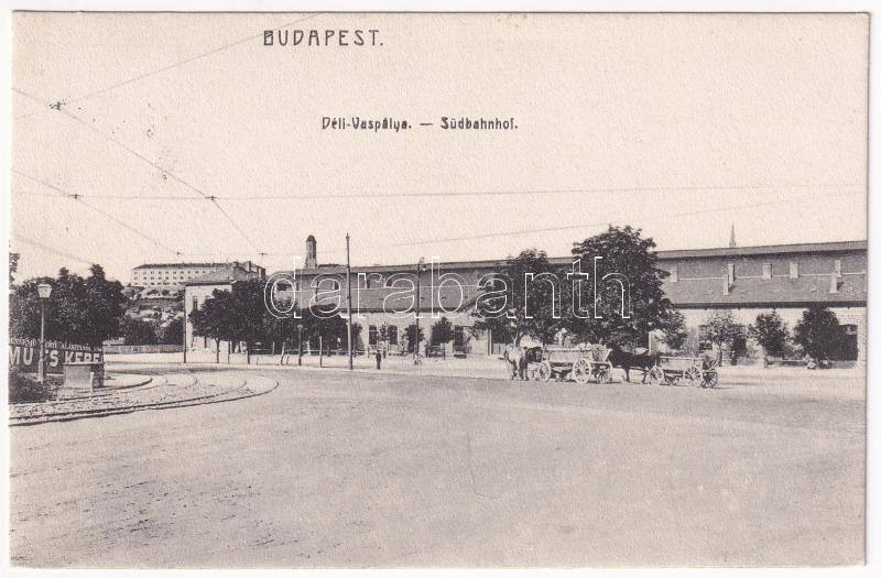 Budapest I. Déli vaspálya, pályaudvar, vasútállomás, lovaskocsi https://www.darabanth.com/hu/442-Gyorsarveres/442.0/Kepeslapok/Magyarorszag~2000005/Budapest-I-Deli-vaspalya-palyaudvar-vasutallomas-lovaskocsi~II2910214