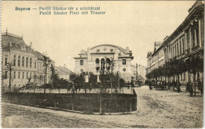 Sopron, Petőfi Sándor tér, Színház. Blum Náthán és Fia kiadása (EK) https://www.darabanth.com/hu/442-Gyorsarveres/442.0/Kepeslapok/Magyarorszag~2000005/Sopron-Petofi-Sandor-ter-Szinhaz-Blum-Nathan-es-Fia-kiadasa-EK~II2909448