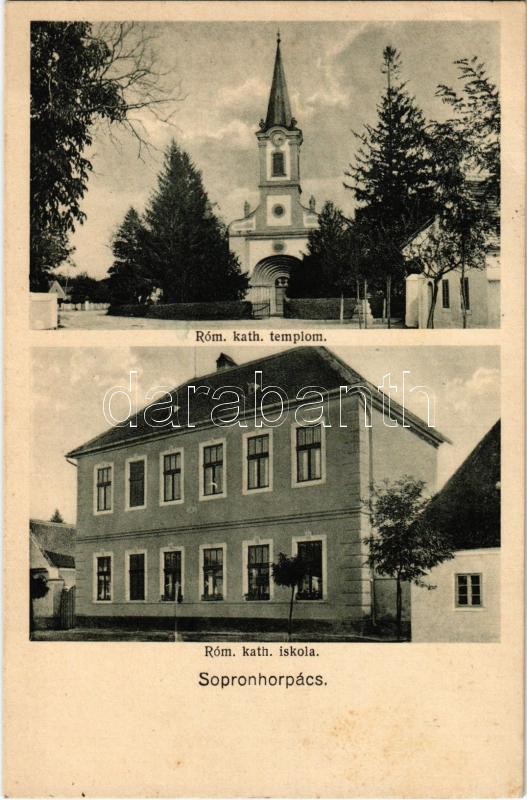 Leírás: Sopronhorpács, Római katolikus templom és iskola. Goldschmied Henrik kiadása