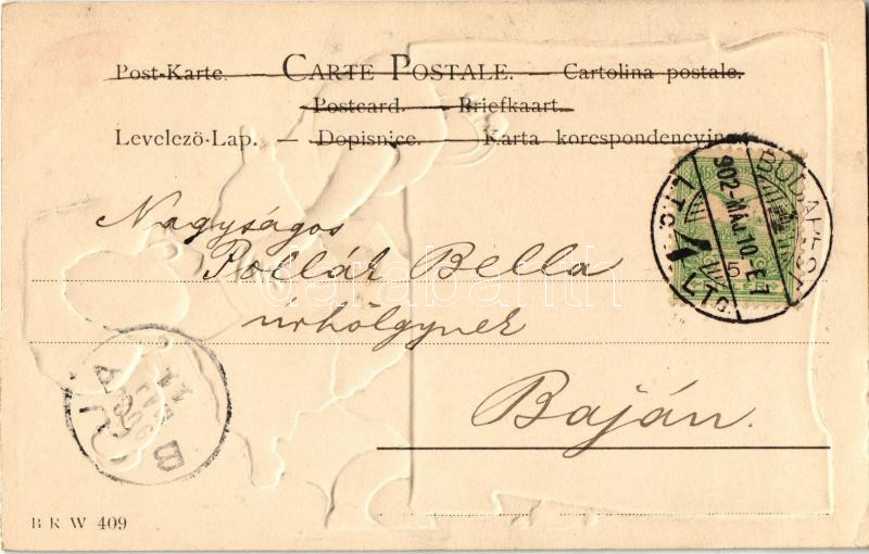 Leírás: 1902 Treff dáma (Francia kártya) / Queen of Clubs (French card). Art Nouveau, Emb. B.R.W. 409. (EK)