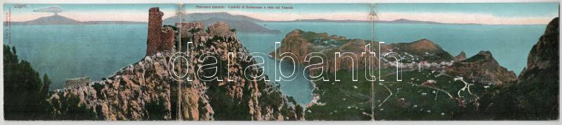 Leírás: Capri, Panorama generale, Castello di Barbarosso e vista del Vesuvio - 3-tiled folding panoramacard (r)