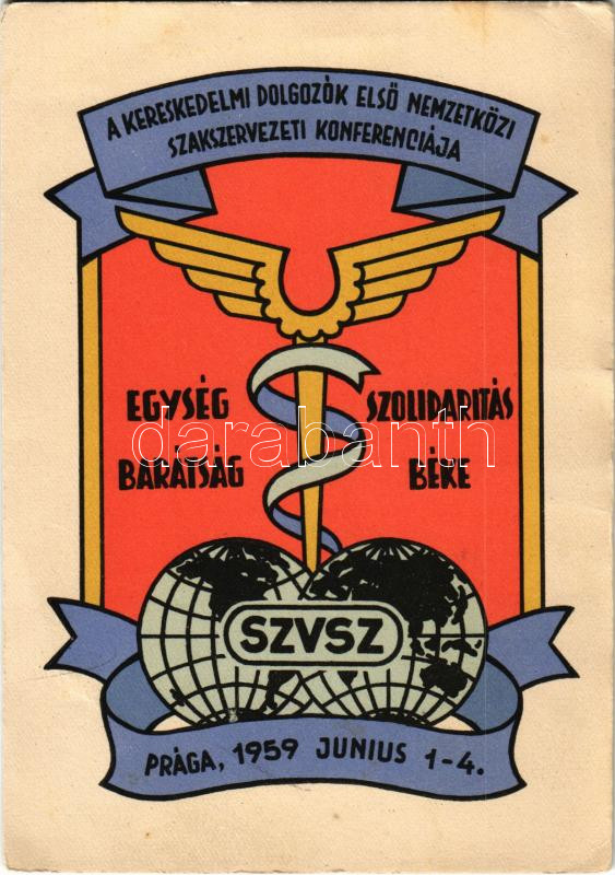 1959 A Kereskedelmi Dolgozók Első Nemzetközi Szakszervezeti Konferenciája Prága 1959. június 1-4. / First International Trade Union Conference of Commercial Workers in Prague. Published by the World Federation of Trade Unions, Prague s: Barkó Sándor (EK)