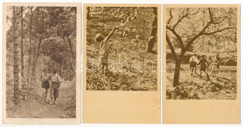 4 db MODERN magyar szocreál propaganda képeslap (Képzőművészeti Alap Kiadóvállalat) "Hív a természet" / 4 modern Hungarian Socialist propaganda postcards