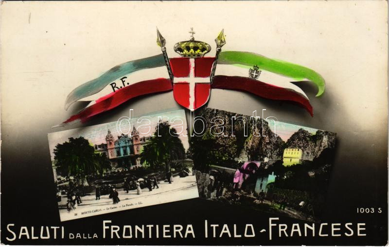 Saluti della Frontira Italo-Francese / Olasz-Francia határ zászlókkal ... https://www.darabanth.com/hu/442-Gyorsarveres/442.0/Kepeslapok/Propaganda-politika~2000092/Saluti-della-Frontira-Italo-Francese-Olasz-Francia-hatar-zaszlokkal-Italian-French-border-pro~II2907411