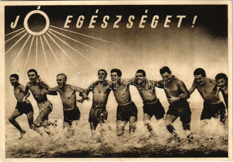 Jó egészséget! Az Országos Társadalombiztosító Intézet reklámlapja. Egészségvédelmi Főosztály Fiatalkorúak gyógyüdültetése / Advertisement postcard of the Hungarian State Insurance Institute, children on vacation, propaganda (fl)