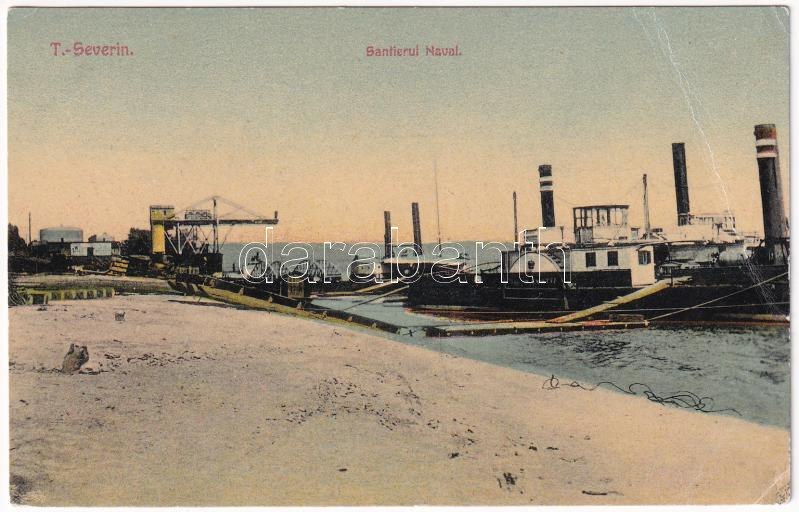 1911 Turnu Severin, Szörényvár; Santierul Naval / Navy shipyard, steam... https://www.darabanth.com/hu/442-Gyorsarveres/442.0/Kepeslapok/Romania~2000057/1911-Turnu-Severin-Szorenyvar-Santierul-Naval-Navy-shipyard-steamship-EB~II2909695