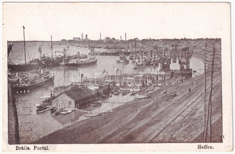 1917 Braila, Portul / Haffen / port, ships (kis szakadás / small tear) https://www.darabanth.com/hu/442-Gyorsarveres/442.0/Kepeslapok/Romania~2000057/1917-Braila-Portul-Haffen-port-ships-kis-szakadas-small-tear~II2909585