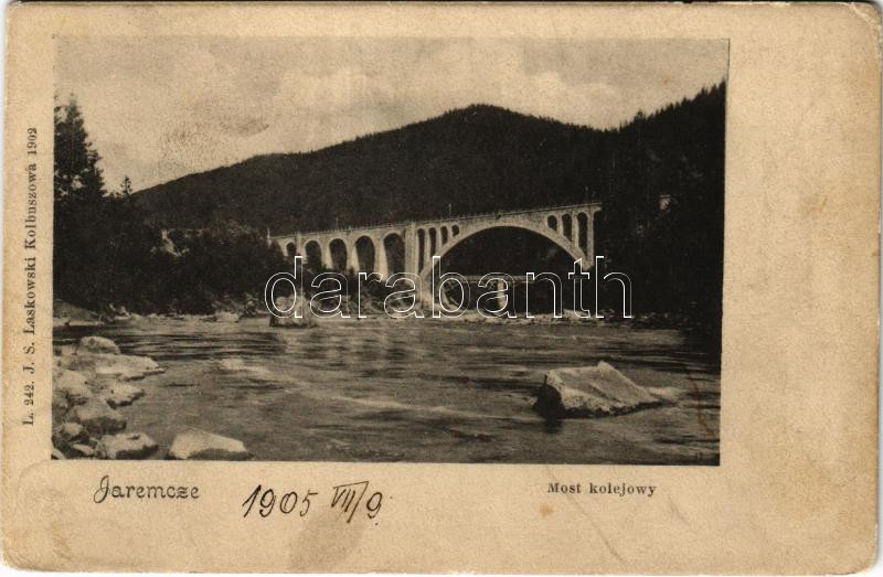 Leírás: 1905 Yaremche, Jaremcze, Jaremce; Most kolejowy / railway bridge (worn corners)