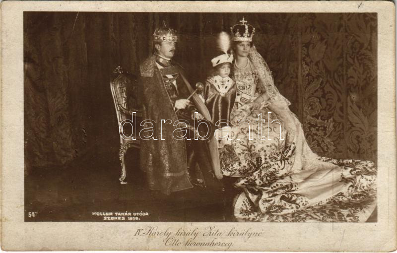 IV. Károly király, Zita királyné és Ottó koronaherceg. Koller tanár utóda Szenes felvétele 1916. / Charles I of Austria, Queen Zita and Crown Prince Otto (fl)