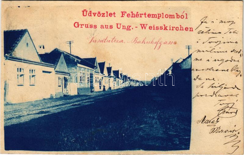 1901 Fehértemplom, Ung. Weisskirchen, Bela Crkva; Vasút utca / Bahnhof... https://www.darabanth.com/hu/442-Gyorsarveres/442.0/Kepeslapok/Vajdasag~2000011/1901-Fehertemplom-Ung-Weisskirchen-Bela-Crkva-Vasut-utca-Bahnhofgasse-street-view-vagott~II2914525