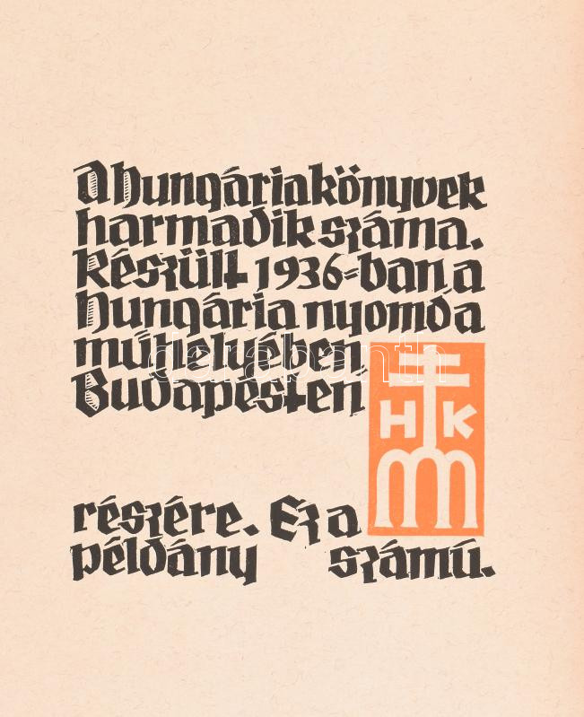 A halál himnusza. Ráskai Lea nyomán írta és rajzolta: Bródy Maróti Dóra, ólomba véste: Kner Albert. Hungária Könyvek 3. Bp., 1936, Hungária-ny. Első kiadás. Kiadói félvászon-kötés, jó állapotban. Számozatlan példány.