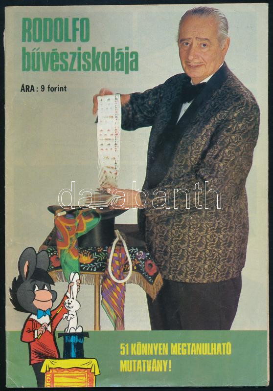 Rodolfo: Így kell ezt csinálni... 25 kártyatrükk. (Bp., 1965), Minerva, 40+(2) p. Kiadói tűzött papírkötés, kissé sérült borítóval. + Rodolfo bűvésziskolája. Bp., 1985, Ifjúsági Lap- és Könyvkiadó, 32 p. Tűzött papírkötés, egy lapon vágásból eredő hiánnyal.