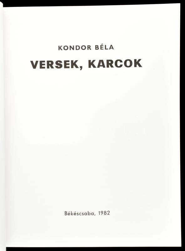 Kondor Béla: Versek, karcok. Békéscsaba, 1982, Megyei Könyvtár. Kondor Béla rézkarcainak egészoldalas reprodukcióival illusztrálva. Kiadói papírkötés, jó állapotban. Megjelent 250 számozott példányban, ebből ez a 210. számú. Kondor Mária által DEDIKÁLT példány.