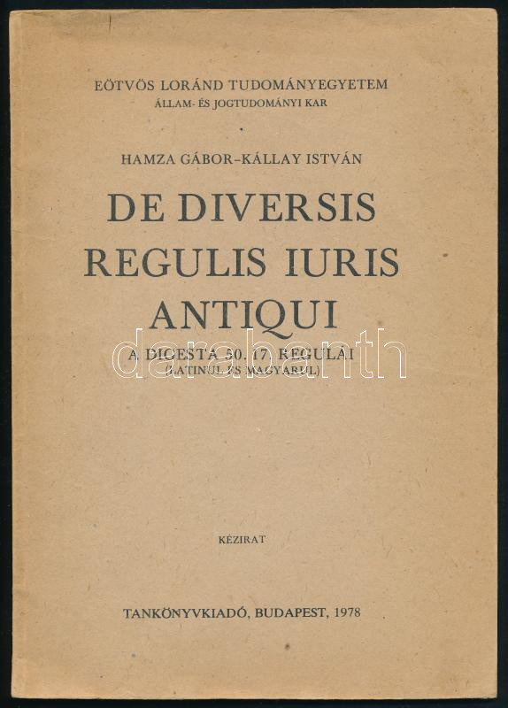 Hamza Gábor-Kállay István: De diversis regulis juris antiqui. A digesta 50. 17. regulái (latinul és magyarul. Bp., 1978, ELTE Állam- és Jogtudományi Kar - Tankönyvkiadó. Kiadói papírkötés. Megjelent 626 példányban.