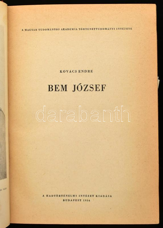 Kovács Endre: Bem József. Bp., 1954, Hadtörténelmi Intézet. Félvászon ... https://www.darabanth.com/hu/442-Gyorsarveres/442.0/Konyvek/Konyvek-Tortenelem~1000010/Kovacs-Endre-Bem-Jozsef-Bp-1954-Hadtortenelmi-Intezet-Felvaszon-kotesben-kis-kopass~II2907615