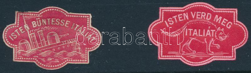 Leírás: 2 db ritka irredenta levélzáró "Isten büntesse Itáliát", "Isten verd meg Itáliát"