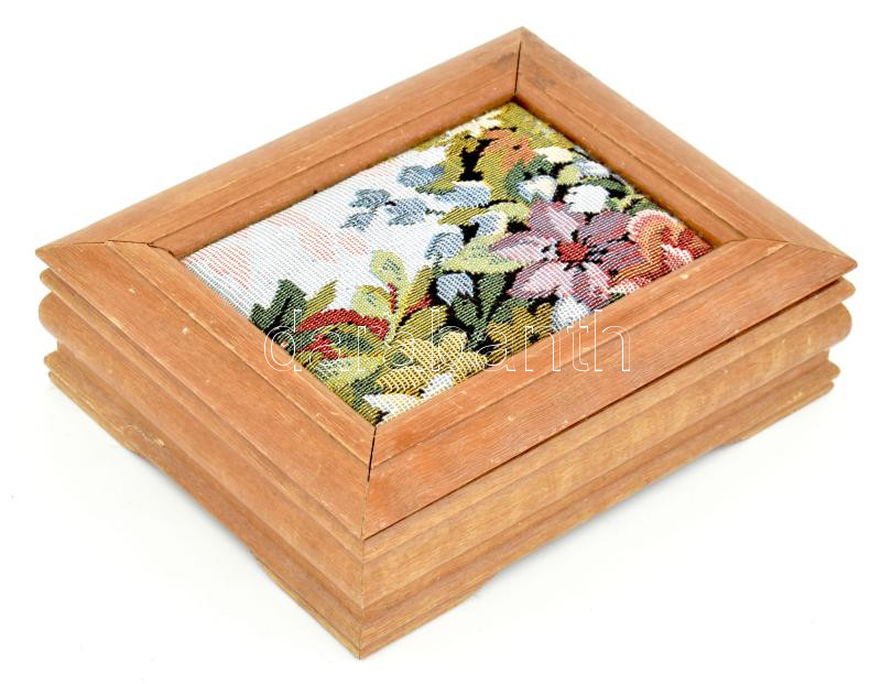 Fa ékszeres doboz, fedelén gobelin díszítéssel, kis kopottsággal, 19x1... https://www.darabanth.com/hu/442-Gyorsarveres/442.0/Mutargy-papirregiseg-egyeb/Bolhapiac~500015/Fa-ekszeres-doboz-fedelen-gobelin-diszitessel-kis-kopottsaggal-19x15x5-cm~II2906629