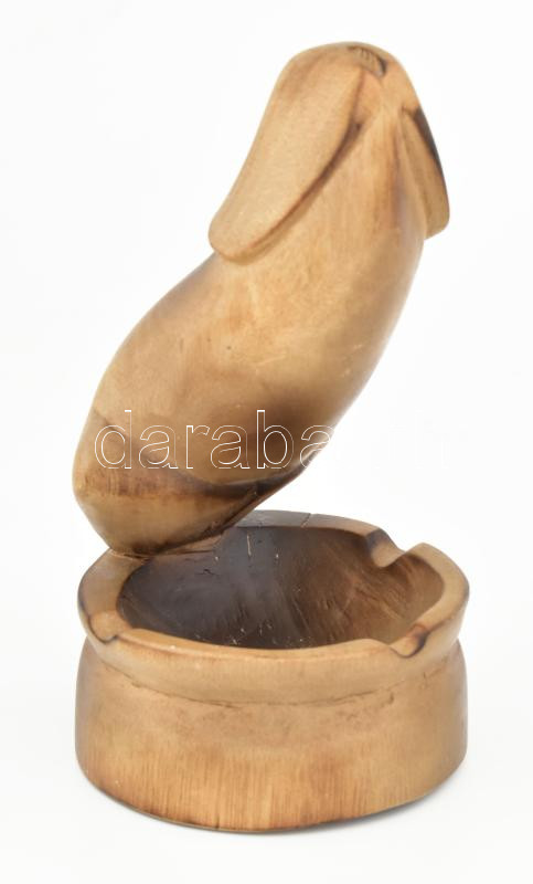 Leírás: Pajzán hamutartó, faragott, festett fa. 16 cm