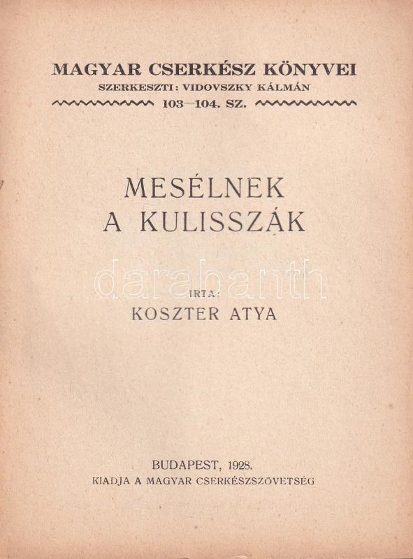 [Koszterszitz József] Koszter atya: Mesélnek a kulisszák. Magyar Cserkész Könyvei 103-104. sz. Bp., 1928, Magyar Cserkészszövetség ("Élet"-ny.), 111 p. Kiadói papírkötés.