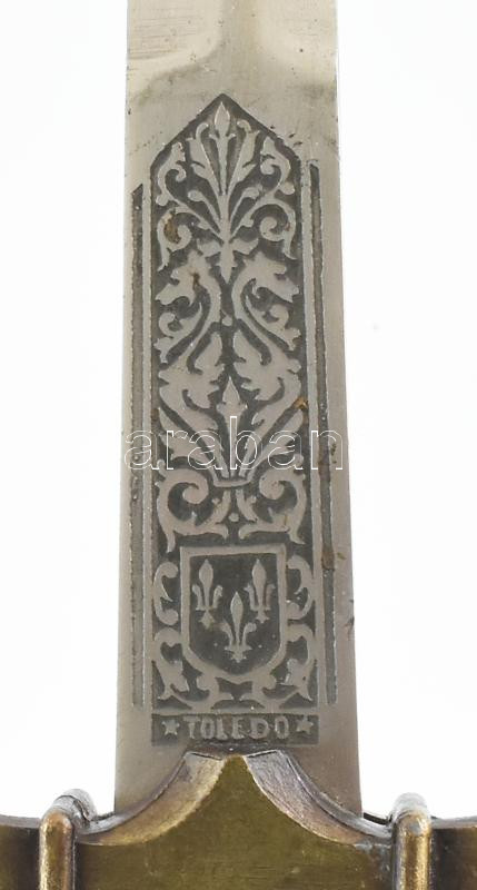 2 darab Toledo dísztőr pár, különböző díszítéssel ékesített réz markol... https://www.darabanth.com/hu/442-Gyorsarveres/442.0/Mutargy-papirregiseg-egyeb/Fegyverek-kesek~500032/2-darab-Toledo-disztor-par-kulonbozo-diszitessel-ekesitett-rez-markolattal-jelzessel~II2907672