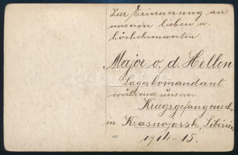 Leírás: cca 1915 Krasznojarszki hadifogolytábor parancsnok fotólap Major. v. d. Hellen. / Lagerkommandant of the POW camp in Krasnoiarsk
