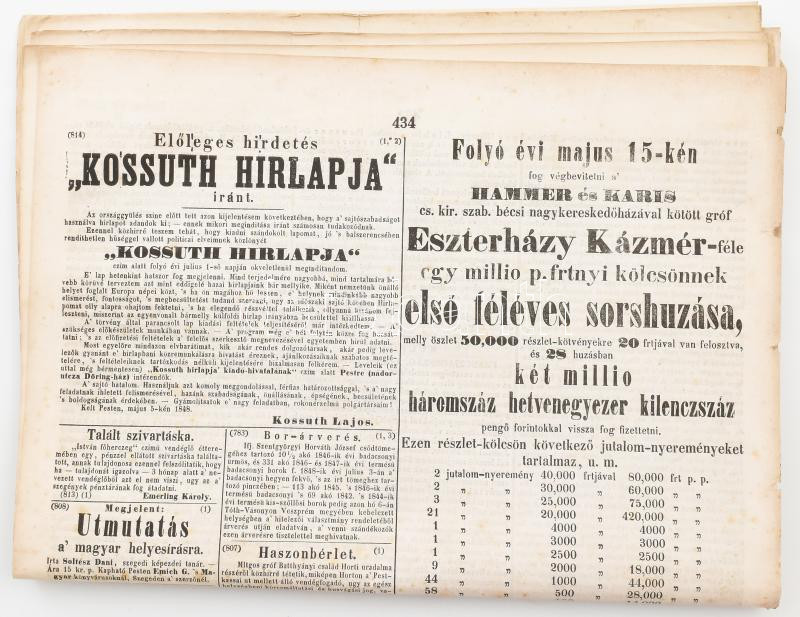 Leírás: 1848 A Pesti Hírlap 4 db száma, május 10., 11., 12., 13.