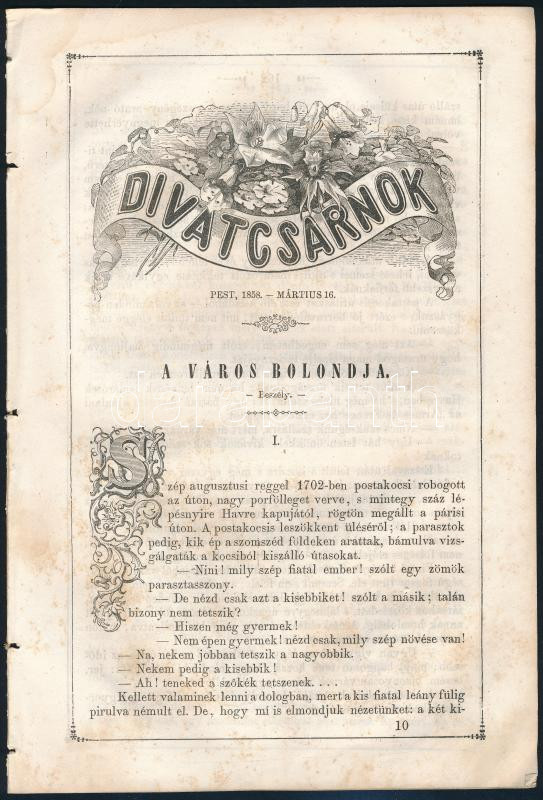 1858 Divatcsarnok 1858. március 16. Szerk.: Császár Ferenc. Pest, Beim... https://www.darabanth.com/hu/442-Gyorsarveres/442.0/Mutargy-papirregiseg-egyeb/Nyomtatvanyok~1000005/1858-Divatcsarnok-1858-marcius-16-Szerk-Csaszar-Ferenc-Pest-Beimel-J-es-Kozma-Vazul-foxi~II2912063