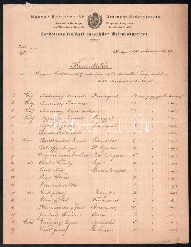 1884-1900 Magyar Bortermelők Országos Szövetkezetének alapszabályai, j... https://www.darabanth.com/hu/442-Gyorsarveres/442.0/Mutargy-papirregiseg-egyeb/Nyomtatvanyok~1000005/1884-1900-Magyar-Bortermelok-Orszagos-Szovetkezetenek-alapszabalyai-jelentese-es-kezzel-ir~II2908513