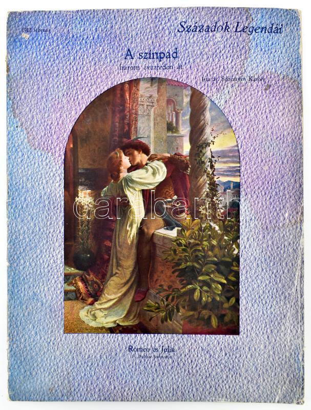 1913 Századok Legendái. 1913. február. Sebestyén Károly: A színpad három évezreden át. Papírkötésben, kissé sérült gerinccel, borító és első néhány lap foltos.
