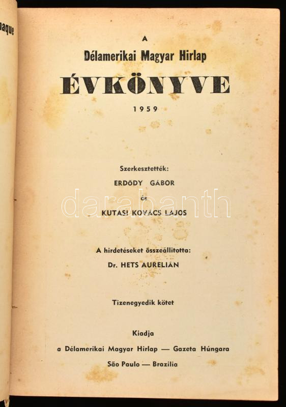 1959 A "Délamerikai Magyar Hírlap" évkönyve https://www.darabanth.com/hu/442-Gyorsarveres/442.0/Mutargy-papirregiseg-egyeb/Nyomtatvanyok~1000005/1959-A-Delamerikai-Magyar-Hirlap-evkonyve~II2908911