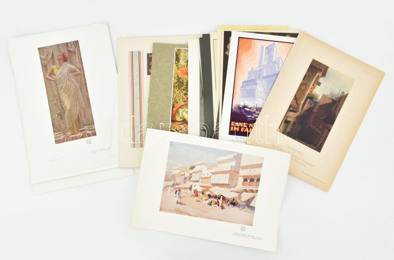 Leírás: cca 1910-1940 Színes reprodukciók, műmellékletek, reklámok, stb.; 26 db vegyes nyomat, nagyrészt 28x19 cm körüli méretben