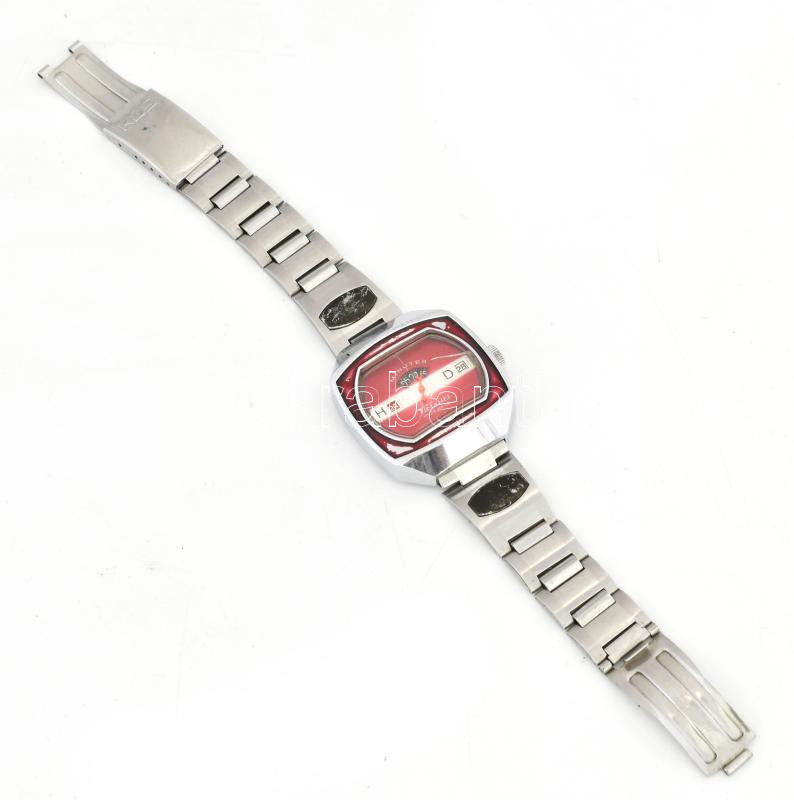 Leírás: Timshel analóg, kézi felhúzós férfi karóra. Működő, jó állapotban, fém szíjjal, karcos plexivel, karcos szíjjal, kopott, 36x40 mm