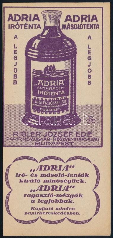 Leírás: Adria ragasztó Riegler Ede írószer reklámos számolócédula szép állapotban